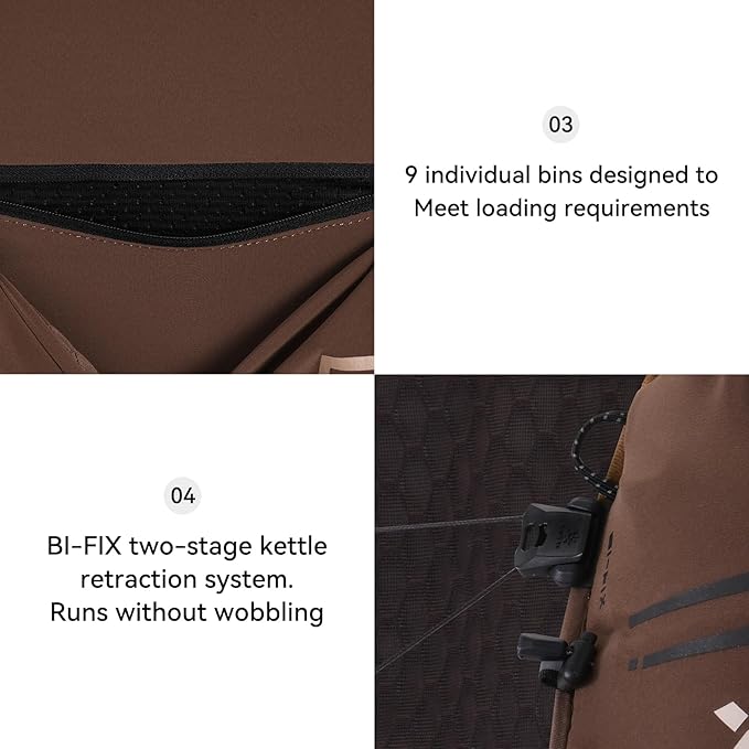 - LOADING/HANGING SYSTEM: The whole running vest is divided into multiple independent storage bags for quickly picking up things, and easily accommodates event equipment. The back bin is layered and stacked, and the elastic breathable mesh is double-layered. The back is set with an independent water bladder compartment, which can accommodate 1.5L water bladder. Two ways to attach trekking poles are available, which is simple and convenient