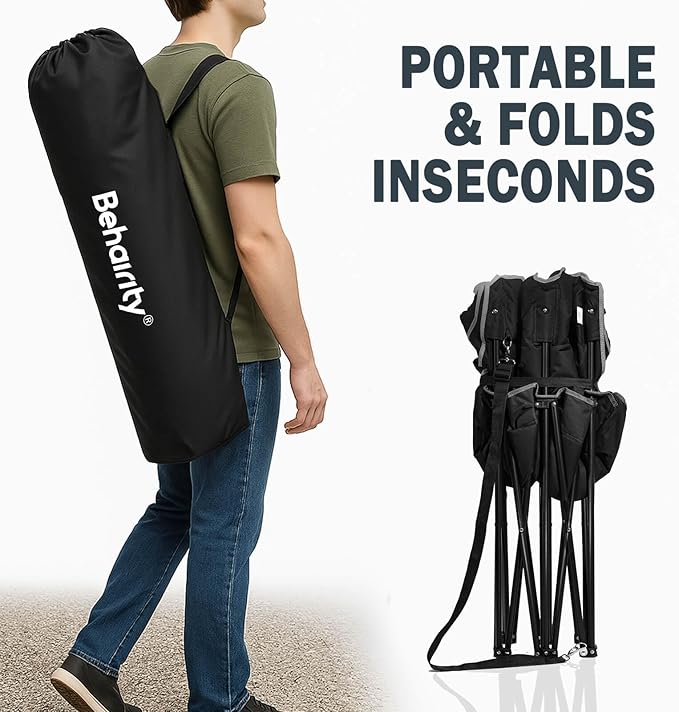 - Heavy-Duty Steel Frame Supports Up to 400 lbs: Built with a reinforced steel frame and weather-resistant 600D Oxford fabric, this heavy duty camping chairs is designed to hold up to 400 lbs, making it stable, strong, and built to last through every tailgate, fishing trip, or backyard BBQ.