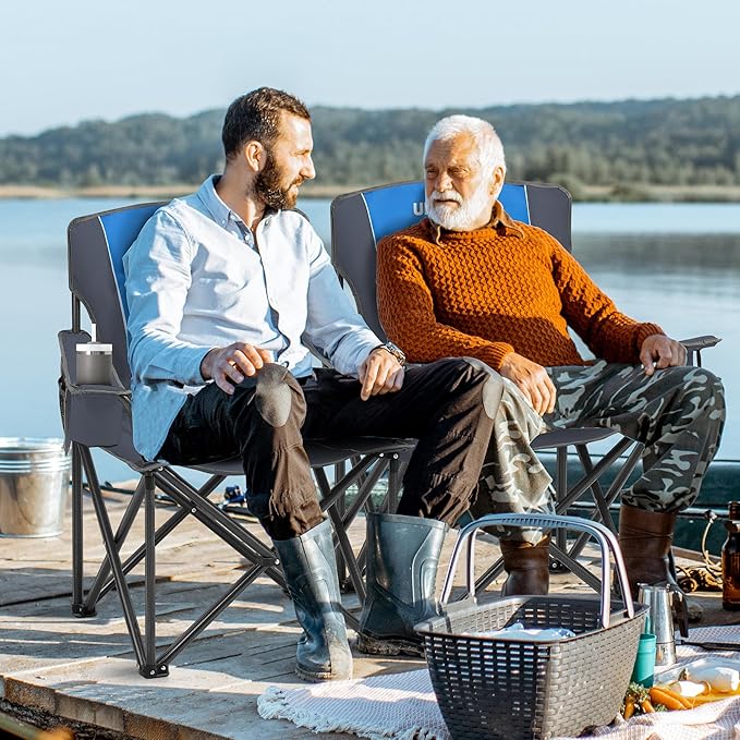 - 【Extra-Wide Comfort for Long Lounging】Say goodbye to cramped seating – the oversized camping chair’s 39.37” seat with 600D Oxford padding and lumbar support cradles your body during 8-hour fishing marathons or backyard BBQs