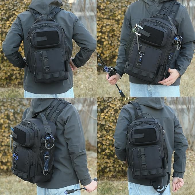- MULTI-USE:Designed for comfort and ultra-convenience, lightweight adjustable fishing bag can be quickly changed from a backpack to a sling shoulder bag and vice versa due to 2 left/right exchangeable, adjustable shoulder straps and an waist strap.This fishing backpack is equipped with padded shoulder straps ,it could also be adjusted as a chest bag, handbag, fishing tackle bag, and travelling bag to satisfy your different needs for a fishing trip.