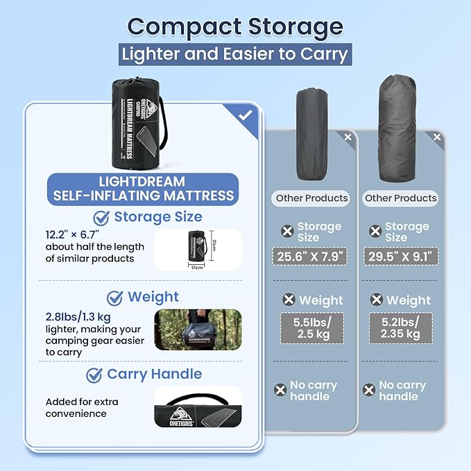 ONETIGRIS LIGHTDREAM Sleeping Pad Self-Inflating Foam Mat Mattress for Camping Backpacking Trekking Car Trips Travels