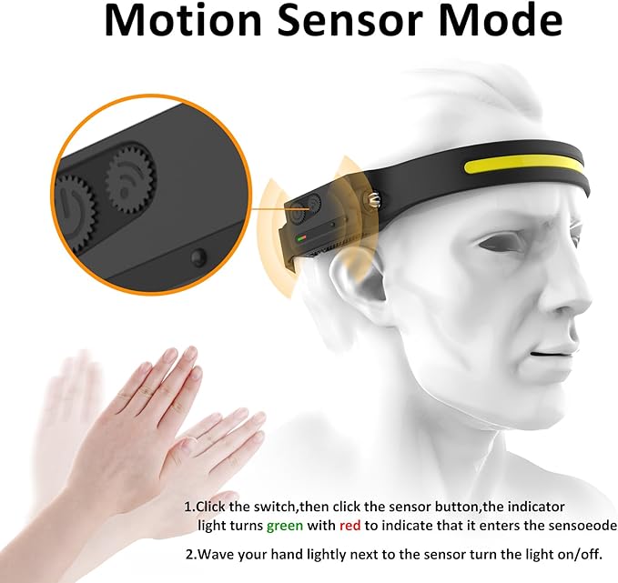 LED Headlamp Rechargeable with Motion Sensor, USB Head Lamp Band with 230°Beam 5 Modes 350 Lumen Headlight Ultra Bright Head light Flashlight for Adults & Kids Outdoor Camping Hiking Running Travel