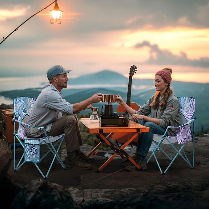 Nazhura 2 Pack Folding Camping Chair with Cooler Pouch, Mesh Backrest and Cup Holder Pocket (Flower, 2 Pack)
