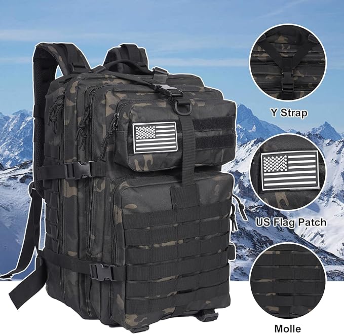 - Designed for adaptability, this MOLLE tactical backpack features an extensive MOLLE webbing system, allowing for easy attachment of additional pouches and gear. Whether used as a 3-day assault pack or a combat-ready MOLLE backpack, it’s built to meet the demands of any mission or adventure.