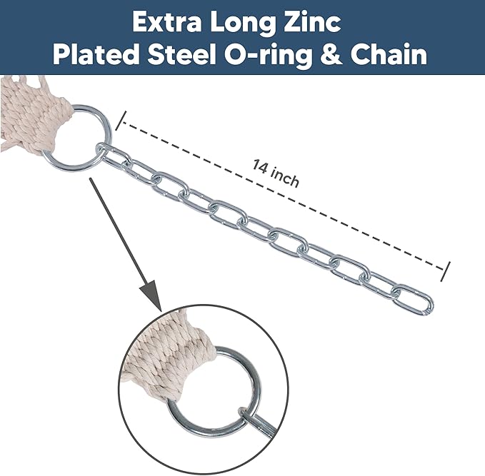 - Easy to Use: Features 14 inch chains, this two person hammock can be hung indoor or outdoor. It’s perfect for bedroom, poolside, garden, patio, backyard, balcony, and many else. A carrying bag is included, so it’s easy to store and take it for a trip. Feel free to contact us if you have any questions during use within one year of purchase. We are always here to help