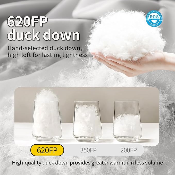 - WARM COMFORTABLE: Camping sleeping bag. Filled with 28.2 oz RDS certified 620FP down. Comfort temp: 41-26°F, Extreme temp: 17°F. Perfect for hikers and campers.