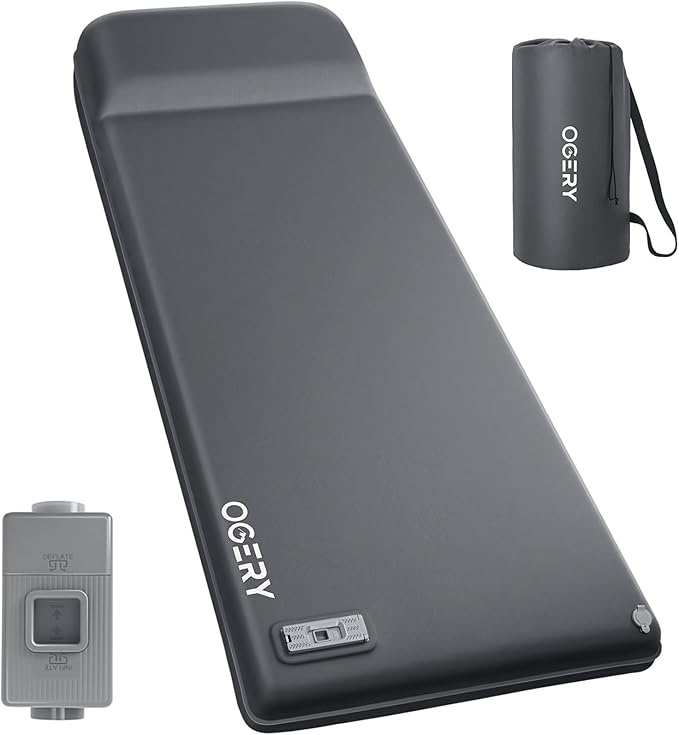 OGERY Self Inflating Sleeping Pad with Electric Pump, 3.15" Ultra-Thick Memory Foam Camping Pad, 4 Season Camping Mattress Pad with Built-in Pillow, Camping Essentials Gear for Tent Travel Car