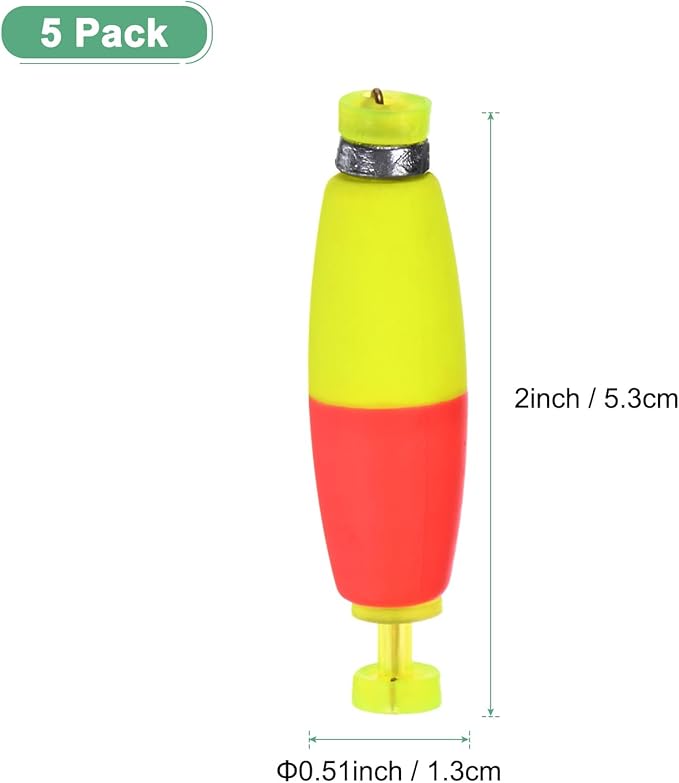 - [Size & Package] - The size of the clip-on fishing bobbers is 2 x 0.51 inches/5.3 x 1.3cm (L x Dia), and the weight is 3/32 ounces. The package contains 5 floats buoys