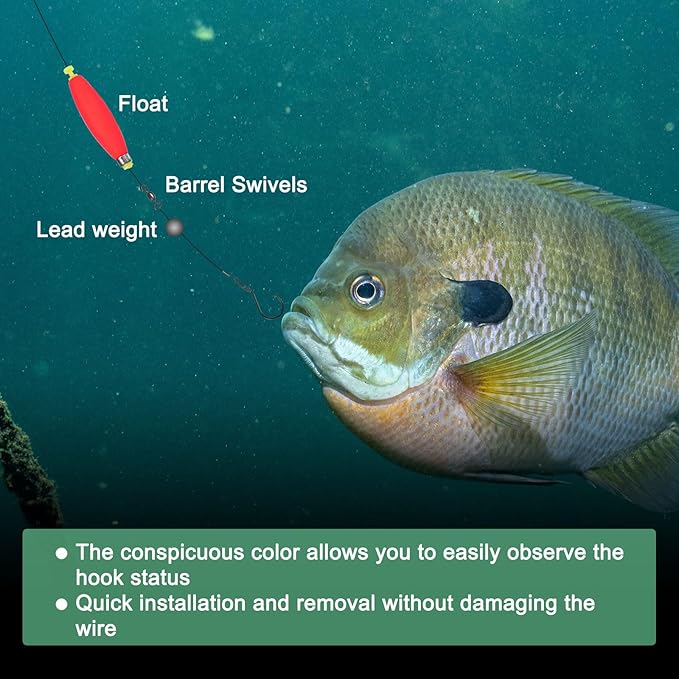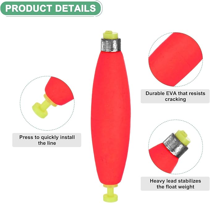 - [Advantage] - The bottom of the float is equipped with heavy lead, allowing the float to be accurately cast in windy weather and float stably on the water surface. There is a spring design on the top and bottom of the float, and a light press can open the float hook, allowing you to easily fix the fishing line