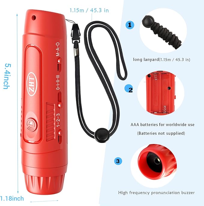 - 【Portable Whistle】The electronic whistle is a modest size at about 5.5 inches × 1.38 inches , a It comes with a lanyard and storage pouch, allowing you to easily attach it to backpacks, camping gear, or carry in pockets, belts, or shoulder straps for quick access.