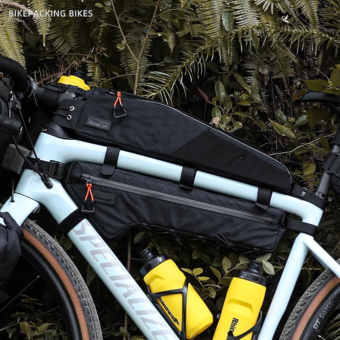 Rhinowalk Bike Frame Bag 2.1L, Waterproof Front Tube Bag with Dual Compartments, YKK Zipper, Phone Storage & Cable Port – Fits Most Bikes – Black