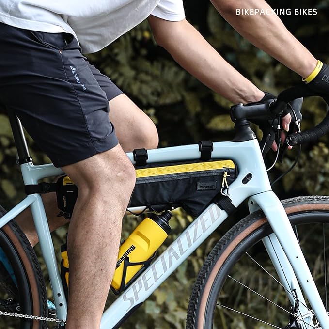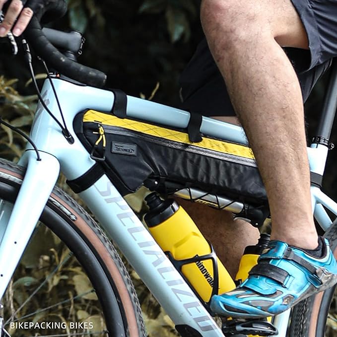 Rhinowalk BHD0017 Bike Frame Triangle Bag 2.4L, Waterproof Tool Storage Bag with YKK Zippers, Pump Holder & Cable Port Slim Fit – Black+Yellow