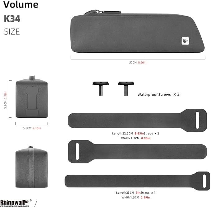 Rhinowalk Bike Frame Bag TPU Waterproof Aero Saddle Bag with Straps and Screws, Hard Shell Bicycle Storage Pack for Road and Racing Bikes-Black