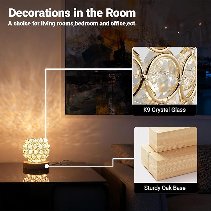 - 【Premium Craftsmanship – Designed to Elevate Your Space】 "The solid oak base and polished metal frame bring understated luxury to any setting—whether it’s a modern living room or a cozy bedroom. The wood base ensures stability, while the crystal sphere light adds a touch of refined artistry."