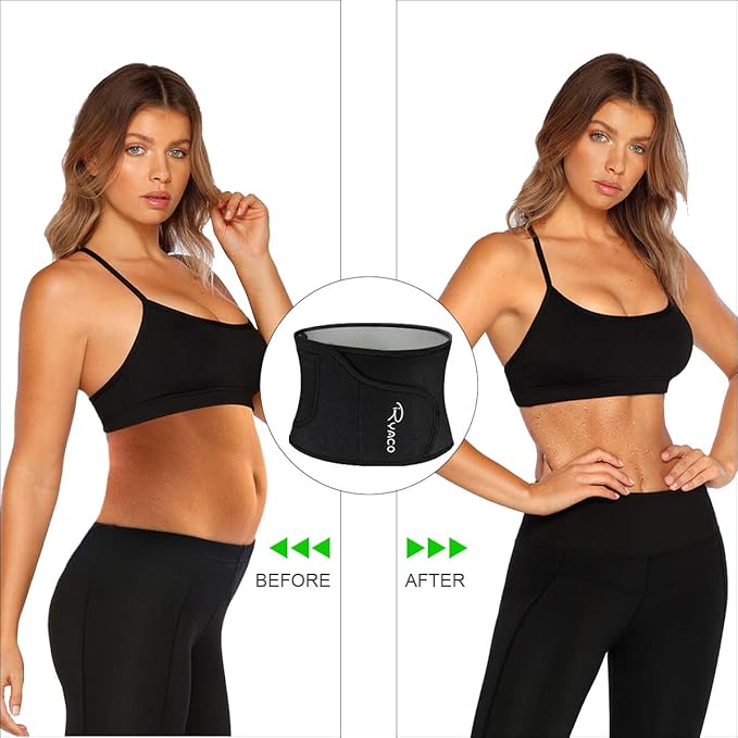 Ryaco Waist Trimmer, Waist Trainer for Women Men, Neoprene Sweat Band, Slimming Stomach Wrap for Workout, Adjustable Sizes