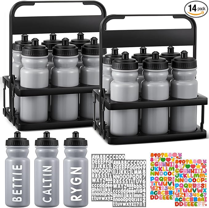 - Package includes: You will receive 12 team water bottles and 2 brackets, and each set comes with 4 letter stickers, the quantity is enough to meet your various use and replacement needs, you can also share these water bottles with your family and friends. You can choose your favorite color, style, letter combination, etc. and choose matching letter stickers to differentiate and make your water glass truly represent your personality