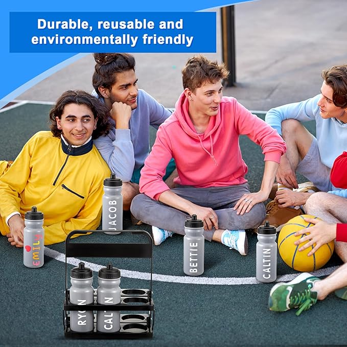 - Premium Material: These sports water bottles and carriers are made of high-quality plastic material, BPA-free, can withstand water temperatures below 60°C Letter stickers are vinyl material that is water and UV resistant, can be applied on products with smooth surfaces both indoors and outdoors, uses the tape's self-adhesive backing and can be easily peeled off