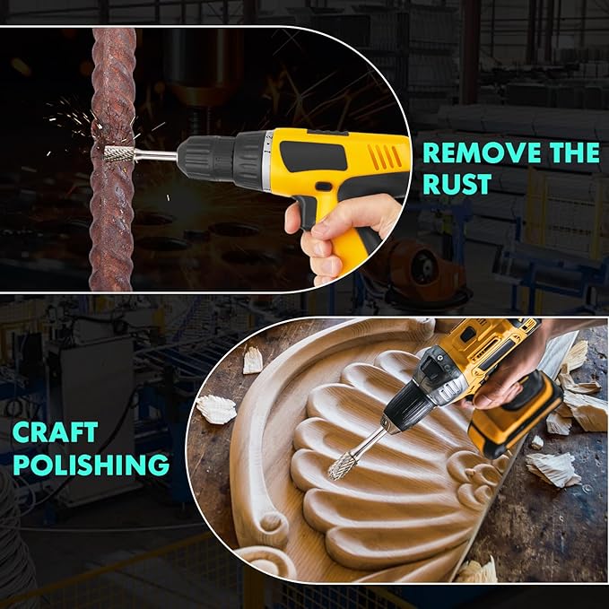 - PROFESSIONAL APPLICATIONS: Our die grinder carbide bits compatible for Dewalt die grinder, suitable for metals, wood, plastic and even stone cleaning, trimming, carving, cutting, shaping, grinding, welding, casting, deburring, polishing and removing material from hard materials such as metals, stone, ceramics, and even some plastics.