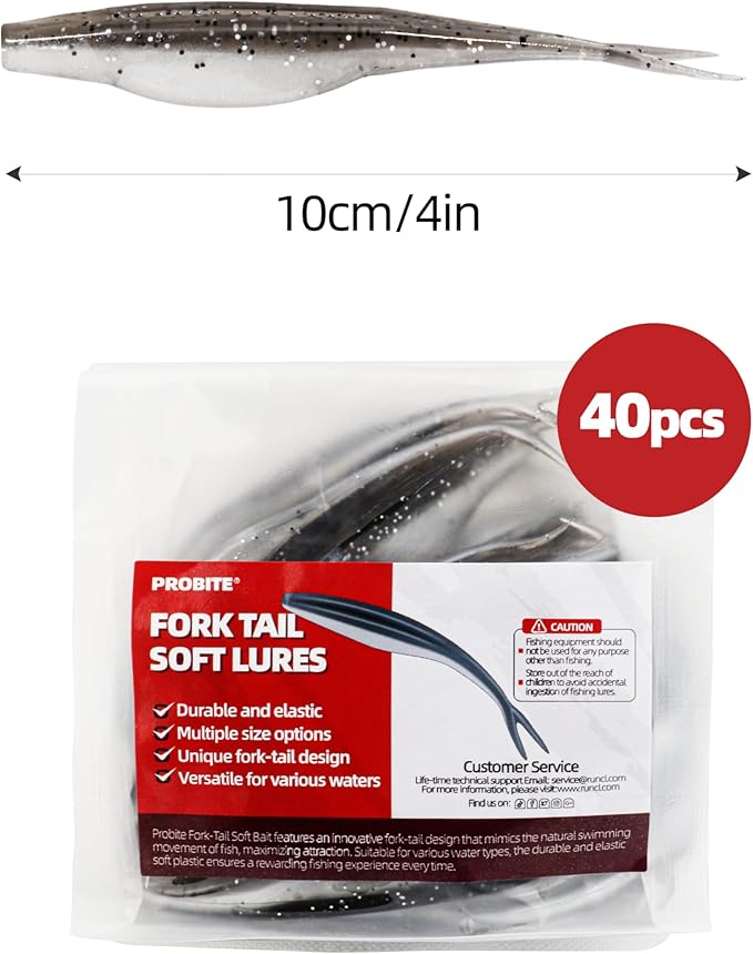 - Perfect for All Types of Fishing: Whether you're casting from the shore or trolling in open water, Probite Fork Tail Soft Lures are your go-to Fishing Lures for both saltwater and freshwater fishing. The soft, flexible design mimics the real movements of fish, making them irresistible to bass, trout, and more.