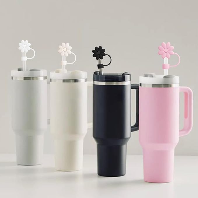 4PCS Silicone Straw Covers Toppers for Stanley Cups 30&40 Oz Tumbler Accessories Flower Straw Caps Mixed Color Dust-Proof Reusable Straws Tips Protectors for Stanley Cup 10mm 0.4in Straws