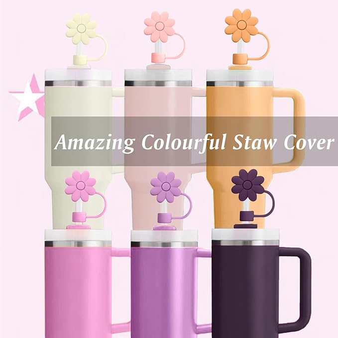 Silicone Straw Covers Toppers for Stanley Cups 30&40 Oz Tumbler Accessories 6PCS Flower Straw Caps Mixed Color Dust-Proof Reusable Straws Tips Protectors for Stanley Cup 10mm 0.4in Straws