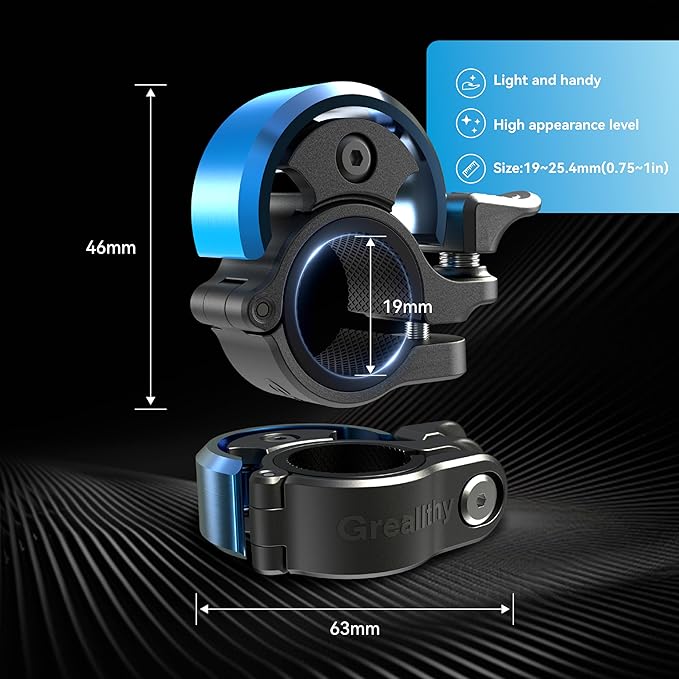 - FITS 0.75-1in (19-25.4mm) HANDLEBAR DIAMETERS: Our bike bell fits handlebars with a diameter of 0.75-1in (19-25.4mm), before purchasing, please measure whether the diameter of your bicycle handlebar falls within the range of 0.75–1 inch (19–25.4 mm) to ensure compatibility and avoid installation issues after purchase, The package includes a hex key and two silicone pads (thick and thin), allowing you to choose the right thickness based on your bicycle handlebar size.