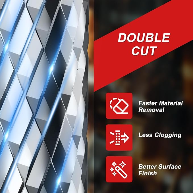 - Double-Cut Efficiency: Dual-edge design ensures faster material removal, reduced clogging, and smoother finishes. Built for metalworking, automotive, wood carving, and DIY projects