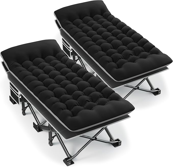 Portable Camping Cot, 32" Extra Wide Camping Cots for Adults with Thick Mattress, Heavy Duty Sleeping Cot Holds Up to 600LBS, Cots for Sleeping, Rv, Beach, Patio, Office Naps 2Pcs (Black)