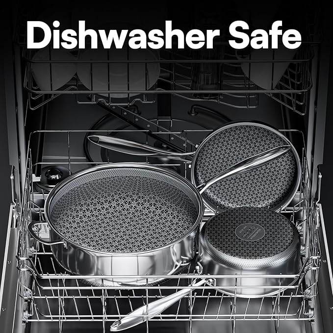 - Dishwasher Safe & Effortless Cleanup: this stainless steel cookware set is easy to clean and conveniently dishwasher safe, resists scratches from utensils, and maintains a sleek look for years to come, saving time for busy families and professionals
