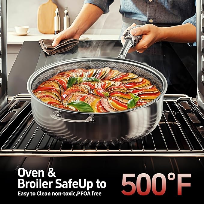- Works with All Stovetops: the stainless steel pots and pans set is designed for gas, electric, induction, ceramic glass, and halogen cooktops, is also oven safe up to 500°F, adding flexibility to your cooking style