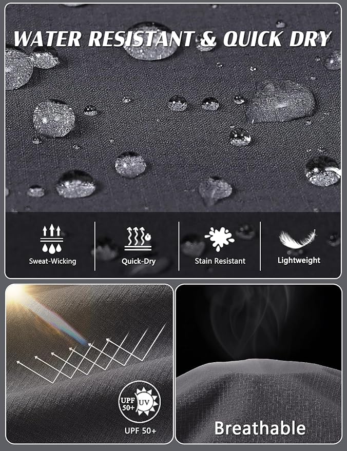- 【Water resistant&Sunscreen】-----Durable water repellent (DWR) finish on fabric to shed light rain and stains, UPF 50+ sun protection guards against UV damage.