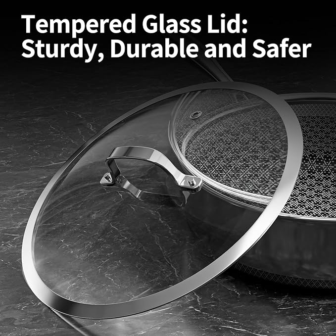 - Cool Handle & Tempered Glass Lids: ergonomic and heat-resistant grips stay cool on the stovetop, providing a secure hold; tempered glass lids with steam vents-monitor cooking progress without lifting the lid, locking in heat and moisture while withstanding high temperatures; shatter-resistant design adds durability to your kitchen essentials