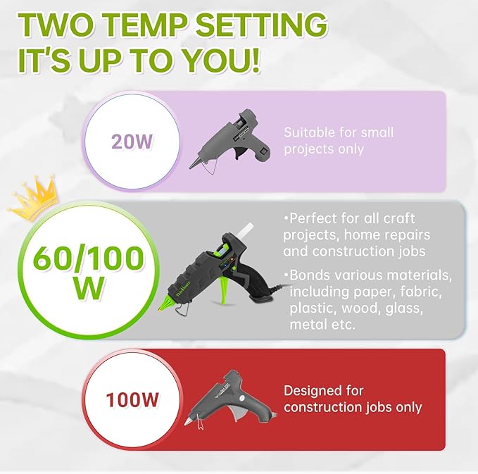- 【Dual Power for Any Project】 Tackle delicate crafts like jewelry or fabrics with the gentle 60W setting. Switch to powerful 100W mode for strong, fast bonds on wood, metal, ceramics, and demanding DIY or home repairs.