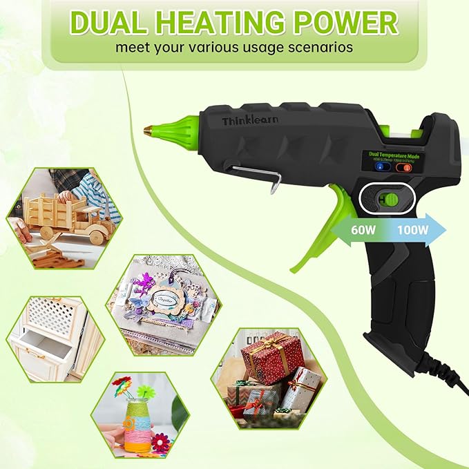 ThinkLearn 60/100W Dual Power Hot Glue Gun Kit with 15 Glue Sticks (7/16"), Heavy Duty Large Glue Gun for Crafts, DIY, Home Repairs - Gray