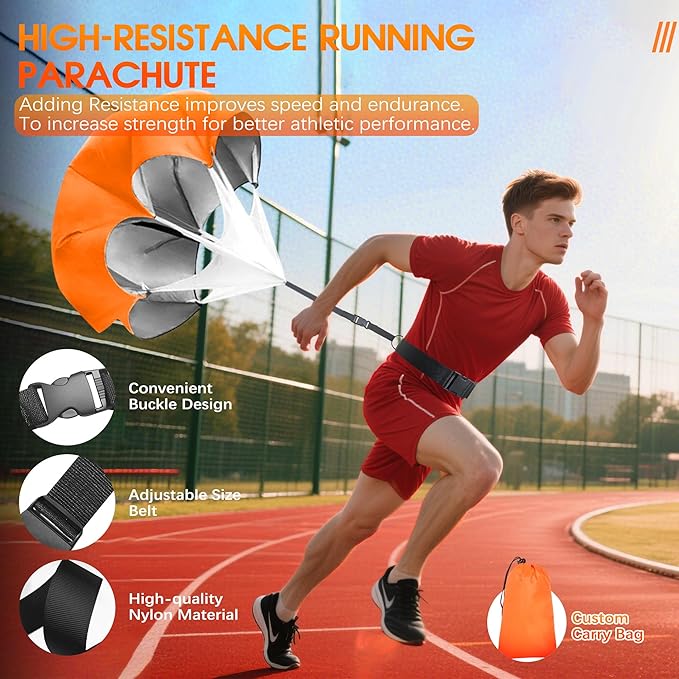 - 4 Agility Hurdles & Resistance Parachute - Agility Hurdles with adjustable 2 height for different drills and techniques. A must have for football baseball basketball workout acceleration training.Using the resistance parachute can help you increase resistance during running, enhance physical training, and increase your sprint speed very effectively. Secure adjustable belt secures around your waist with one click.
