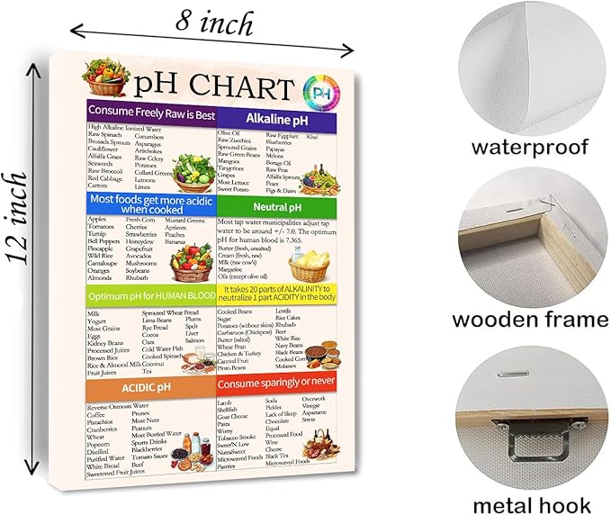 PH Food Chart Canvas Wall Art the ph scale Picture Healthy Acid Reflux to Eat Alkaline Diet Balance Sheet Poster Kitchen Living Room Guide Nutrition Decor Framed 8 * 12 Inch