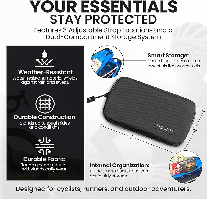 ALMSTHRE Ride Wallet 7”x4” | Waterproof Cycling Wallet for Phone, Cards & Essentials | Durable Ripstop Nylon – Fits Most Phones & Passports | Secure Storage for Biking & Travel