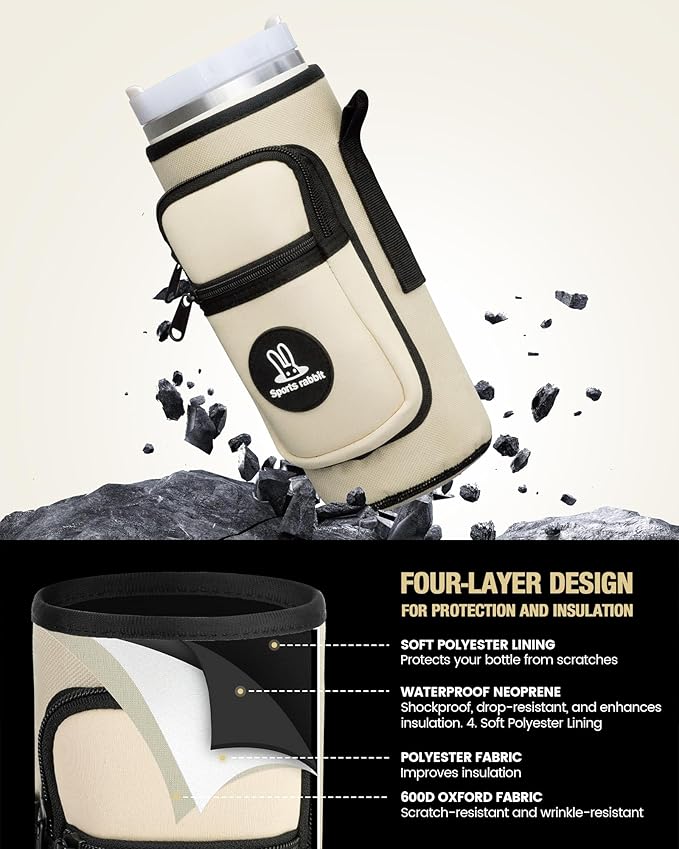 Sports rabbit Universal Water Bottle Holder – Durable Oxford & Neoprene Hybrid Design Compatible with Stanley 30/40oz Handled & 64/87oz Straight Tumblers, Adjustable Strap for Gym, Travel, Outdoors