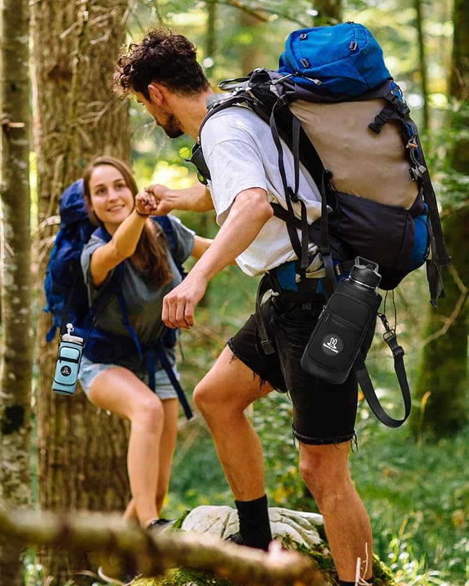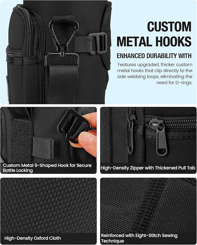 - Premium Adjustable Strap & Secure Closure:Wide 1.5-inch adjustable strap (up to 60 inches) reduces shoulder strain, while the upgraded 9-shaped hook closure keeps bottles securely in place. Ideal for walking, hiking, gym, office, or outdoor adventures, providing comfort, stability, and peace of mind.
