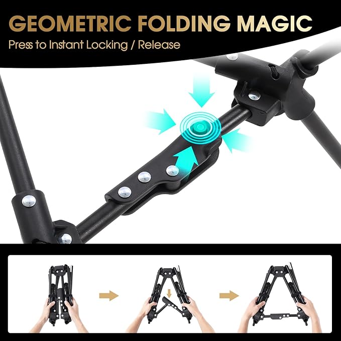 - 【Easy to Setup】Exclusive spring-lock clip design on the triangular base: Pull to open & lock instantly, press to fold. A simple structure allows for fast assembly and disassembly even in outdoor conditions.