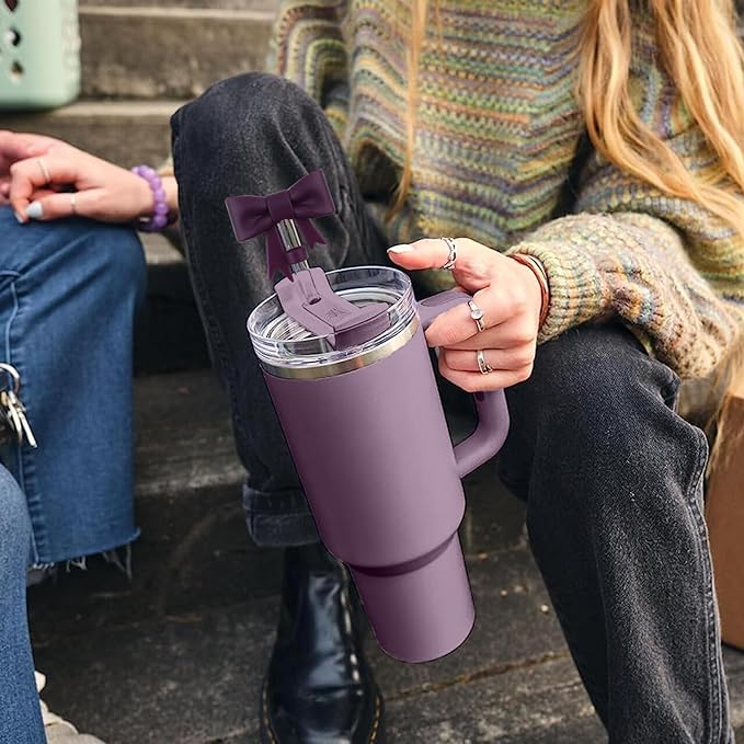 4Pcs Silicone Straw Toppers Covers for Stanley Cups 40/30oz 10mm(0.4in) Dust-Proof Bow Straw Covers Toppers Suitbale for Stanley Cup Accessories Reusable Straws Caps (Dark Purple)