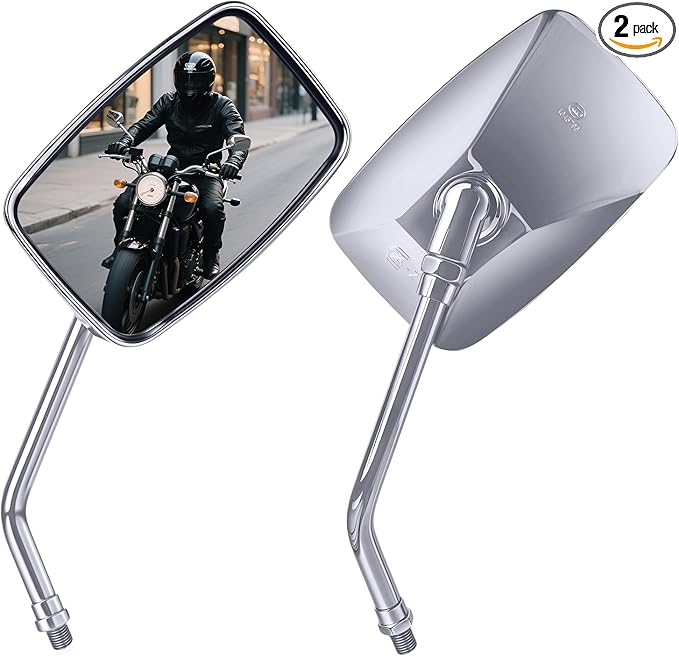 - Wide Fitment for M10 Mounting Holes: Please check your motor whether fit well before ordering, universal M10 chrome Motorcycle rear view mirrors fit for most motorcycles Street Bike Cruiser Adventure Touring Dirt Bike ATV Honda Kawasaki and etc. Please kindly noted this mirrors not fit for Yamaha.