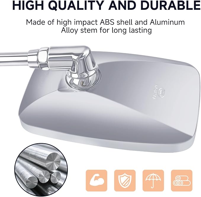 - Quality Materials: High Impact ABS Mirrors Housing & Aluminum Alloy Stem, which are durable, shockproof and corrosion-resistant, and can cope with different climate environments and can be used for a long time.