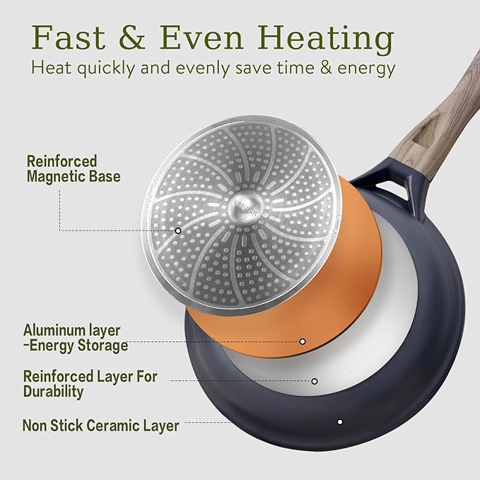 - COMPATIBILITY &INDUCTION READY:Designed for all stovetops, including induction, gas, and electric, with even heat distribution.