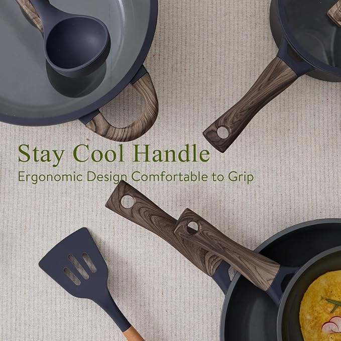 22Pcs Pots and Pans Set Non Stick Non-Toxic Ceramic Cookware Sets Nonstick Kitchen Pot and Pan Set With Lid Gray Granite Induction Compatible with Glass Lids 10" Griddles Frying Pan PFOA/PFOS-Free