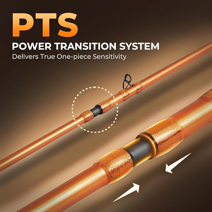 - High Sensitivity 2-piece Fishing Rod – Premium KastFlex IM6 graphite blanks give exceptional bite detection for bass fishing, trout fishing, walleye fishing, and more. The Power Transition System (PTS) delivers the seamless sensitivity of a one-piece rod with the convenience of a 2-piece design for easy transport. Includes extra matching tip section for backup.