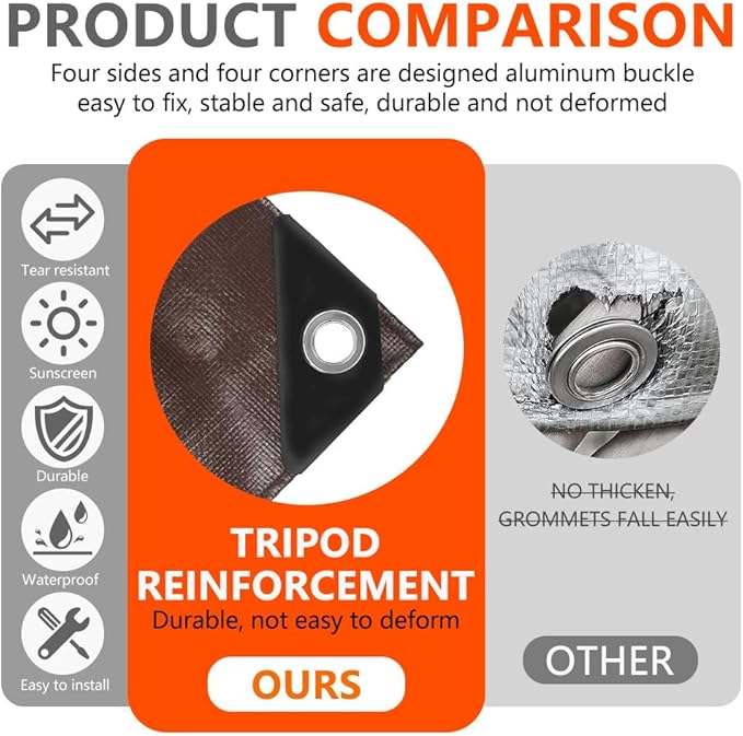 - Waterproof & Weather-Ready — Unlike flimsy tarps, ours features dual-sided waterproofing with heat-sealed edges and plastic-reinforced corners to block leaks. Stays intact in heavy rain, snow, or scorching heat—ideal for year-round farm, job site, or backyard use.