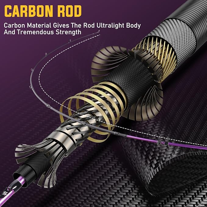 - Durable Carbon Fishing Rod: 5-foot 9-inch lightweight yet sturdy carbon construction, available in purple and gray.