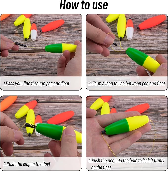 - With cigar shape design, peg floats are allowed to stand upright and immediately respond to the slightest signal from below, giving you a good fishing experience
