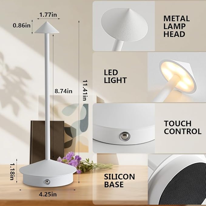 - ⭐【Sleek & Sturdy Design for Any Space】 Modern minimalist look with a durable aluminum body for soft, glare-free light. Non-slip base keeps it stable on any surface. At just 11.4 inches tall, it fits perfectly on desks, nightstands, or outdoor tables. Ideal for:✔️ Bedroom ✔️ Restaurant ✔️ Patio ✔️ Camping ✔️Diningroom✔️Liivingroom